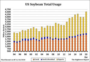 Soybean futures continue to trade lower. Talk of Brazil rains next week triggered fund long liquidation. Some feel this forecast Brazil rains are normal but delayed. This rains could help crops in central Brazil. Key will be if it also rains in north and south Brazil plus Argentina. Some feel below 11.50 SF, there is value for end users. Much of the new selling was technical related as nearby soybean traded below the 20 day moving average support line. Doubt if USDA makes very many changes in the December US/World balance sheets. January numbers will be more important to trade and price discovery. There is talk that China may have bought US soybeans for January. Weekly US soybean export sales are estimated near 400-1,150 mt versus 768 last week. US is the only exporter until Brazil 2021 harvest. USDA est US soybean exports near 59.8 mmt versus 45.6 last year. World soybean exports are estimated near 167.8 versus 164.5 last year. USDA estimates China imports near 100 mmt versus 98.5 last year.