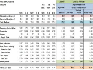 Corn futures traded higher and closed near session highs. There was some early pressure due to liquidation of March open interest before first notice. There was early talk of no deliveries against March corn. CK help support near 20 day moving average near 5.43. Next resistance is near 5.55. CZ made new contract highs. Weekly US corn exports were near 48.5 mil bu vs 36.3 last year. Season to date exports are near 944.7 vs 524.0 ly. USDA goal is 2,600 vs 1,778 ly. Some est US exports could be closer to 2,900. This could be the difference between a carryout closer to 1,200 vs USDA 1,502. Strong demand for US export and talk of higher domestic use could support higher corn prices. USDA est of near record high US 2021 corn acres and yield but only increased carryout 50 mil bu should also support prices. Corn could also fund new demand new inoculations against the virus begins to add to fuel and feed demand. There is also talk of steady increase in inflation which could also trigger new speculative buying. Key will be US 2021 weather and final crop size.