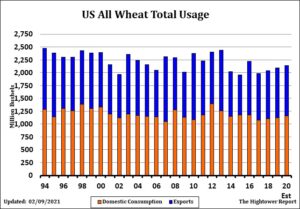 Wheat futures traded higher. Fed Chairman Powell’s comments on US lifestyle will be back to normal by yearend and they will continue to pump $120 billion each month into US economy was welcomed news to the bulls. USDA Ag Forum numbers suggest US will have to have a perfect 2021 wheat crop to push prices lower. Weekly US wheat export sales are est near 250-700 mt versus 399 last week. Recent rally in World vessel freight rate has reduced US export competitiveness to N Africa and Mideast buyers. Matif wheat futures continue to trend higher due to talk of lower EU supplies and lack of Russia new crop wheat prices. US weather maps lowered the rainfall forecast for much of the US south plains over the next week. Some thought yesterday maps were too wet. This week’s USDA HRW crop ratings did not drop as much as feared but many feel it is too early to access any damage due to last week’s record cold temps.