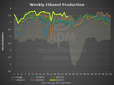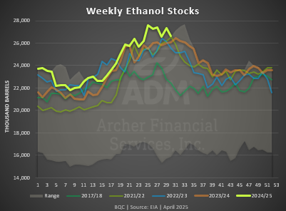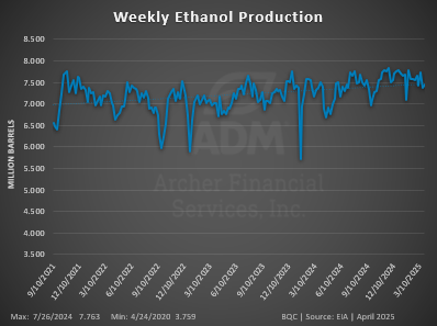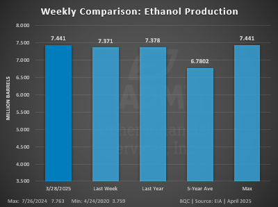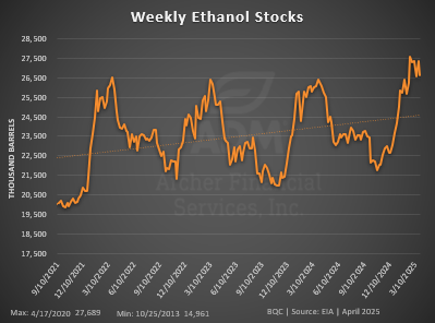 Ethanol Production was up 10K barrels per day week-over-week to 1.063 million barrels per day. This was in line with expectations.