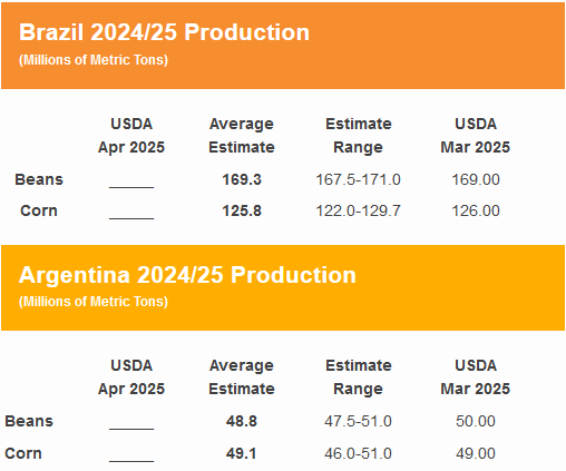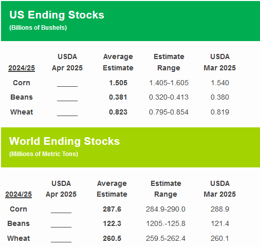 April 10th USDA WASDE Report Estimates