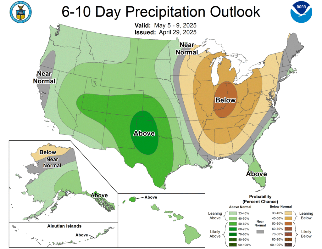 This morning we saw another flash sale of 120K MT of corn to an unknown destination. Since April 2nd (“Liberation Day”) All US flash sales of soybeans have gone to “Unknown” destinations. Yesterday, there was a Reuters article that reported China has goals to lower grain use in livestock feed to 60% and the soymeal ration to 10%. Soybean meal has made up 13% of their feed ratio since 2023. The goal is to accomplish this by 2030. This is all in response to the US/China Trade War and China again is looking to take a longer-term approach to the global conflict. By 2028, the US may have a totally different White House and China could be in a better position with greater leverage.
