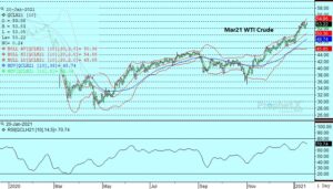 The petroleum complex traded steady to higher with hopes of additional stimulus in the US underpinning values. The IEA report released yesterday suggested that global oil demand would recover by 5.5 to 96.6 mb/d following an unprecedented collapse of 8.8 mb/d. They noted that the resurgence in COVID-19 cases was slowing the rebound, but were hopeful the rollout of vaccines, a cold snap in Europe, and continued restraint by OPEC+ and in particular Saudi Arabia was putting fundamentals on a stronger trajectory this year with both supply and demand shifting into growth mode. The fact that neither the OPEC or IEA report showed much change in consumption appeared to help underpin bullish sentiment.