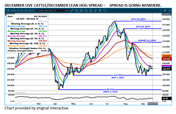 A very slow trading day on Wednesday. Volume for December was only 22330 contracts and February was just 10,556 contracts. The trading range for December was just 75 cents. Traders are sitting on the sidelines and are going to wait to see Friday’s cattle on feed report or if packers this week have any surprises on cash cattle prices. Cash cattle were higher last week on light buy.